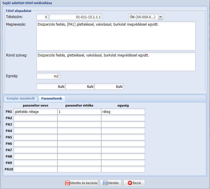 - Ha a tétel paraméterekkel tud számolni - azok az adatok is kitölthetőek, ezzel pontosítva mégjobban a komplex tétel számított mennyiségeit. Ha nem adunk meg paraméter értéket, akkor az alapértelmezett paraméter adattal fog számolni.
