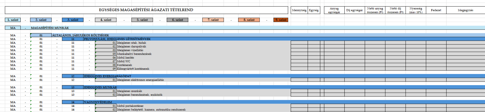 2026. áprilistól megjelent programunkban az ÉKM ajánlása szerinti Magasépítési Ágazati Tételrend szerinti csoportosítási lehetőség.