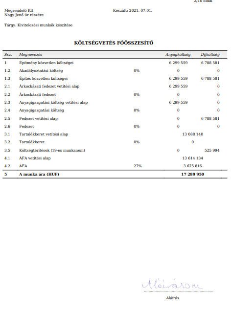 A TERC-ETALON legújabb funkciója ezt a problémát kezeli: lehetőséget ad arra, hogy az aláírás már a PDF export során bekerüljön a költségvetésbe.