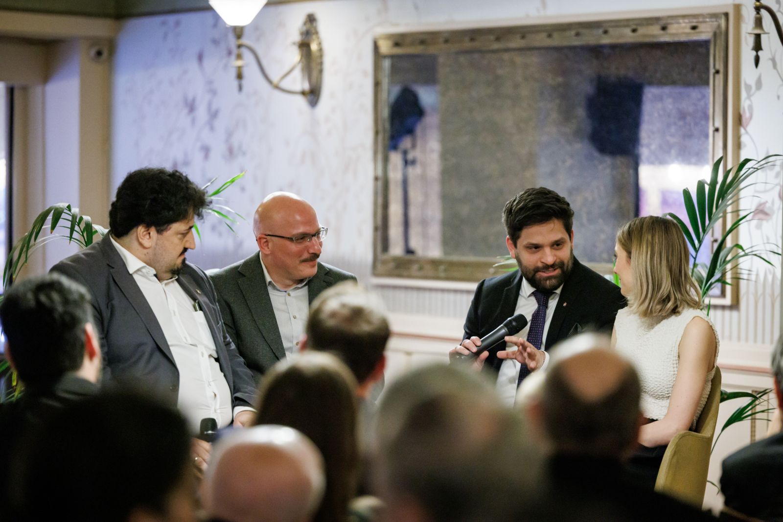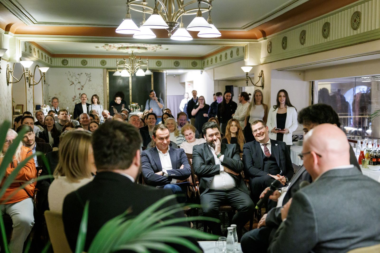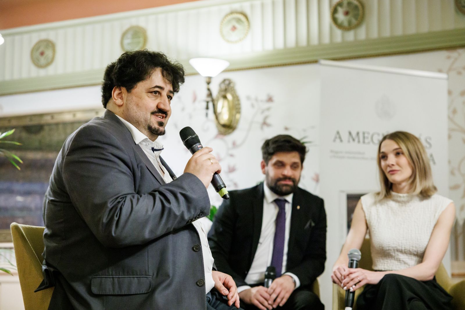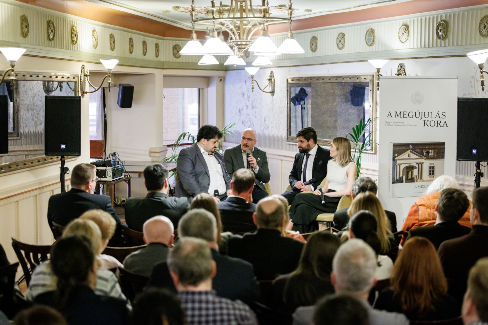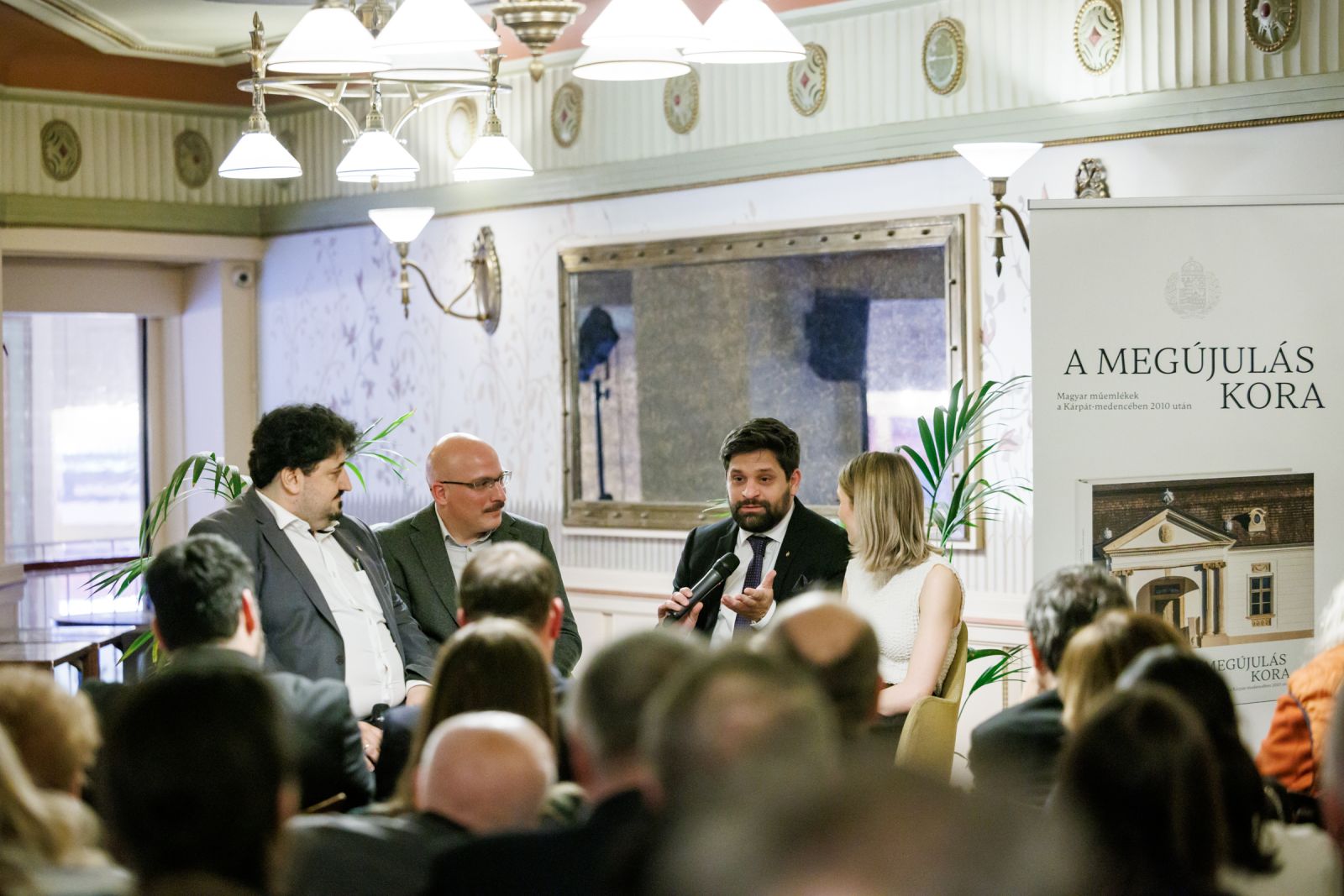 A bemutató zárásaként Szende András, a könyv főszerkesztője, Meszleny Zita szerkesztő és Megyesi Balázs műtárgyszakértő Huber Szebasztián történész, a Genius Loci Alapítvány kuratóriumi elnöke moderálásával beszélgetett az albumról, a műemlékvédelemről. Szóba került, hogy a terek, épületek észrevétlenül is befolyásolnak bennünket - például tudattalanul egy szeretett épület színeit választjuk a lakásunkba; hogy az embereket érdeklik a műemlékek – hiszen a múltjukat, a történelmüket, a történeteiket hordozzák. Meszleny Zita elmesélte, számára megrendítő volt látni, hogy a történelem viharai által újra és újra elpusztított épületeket hogyan építették fel újra és újra – hogyan maradt életben minden megpróbáltatás ellenére a remény. Szende András elképesztőnek nevezte, hogy úgy dolgozott az albumon 130 ember, köztük egy szűkebb, 30 fős csapat, hogy egy vita nem volt, egy hangos szó nem esett. Mindenki tette a dolgát, valóban együttműködve.